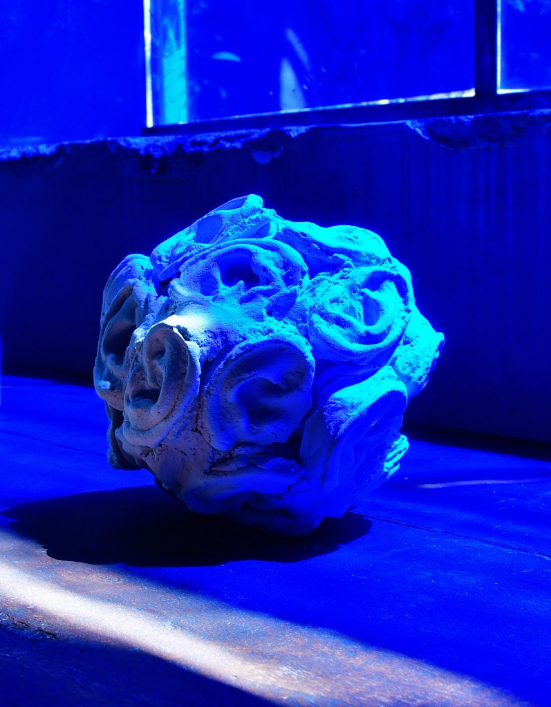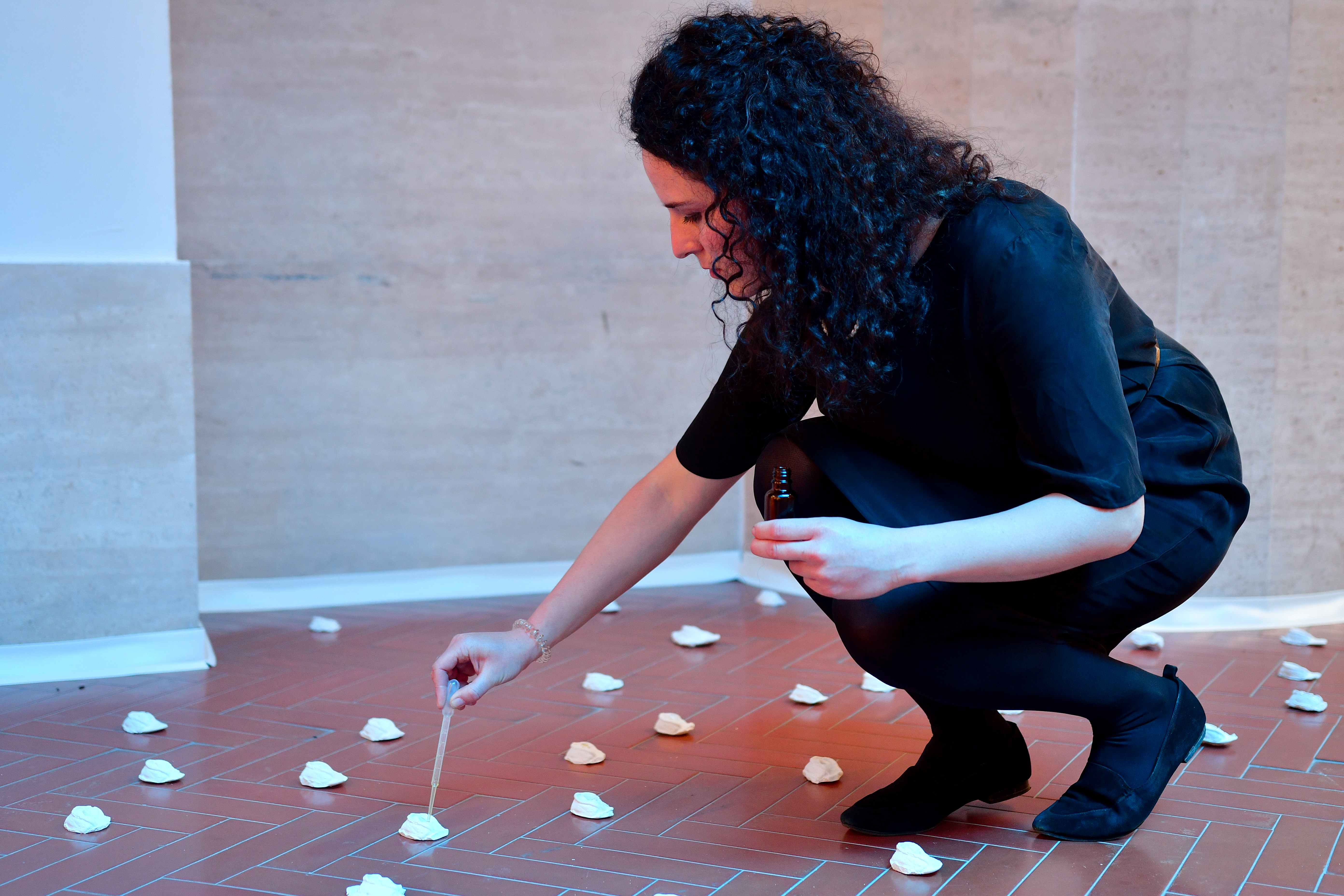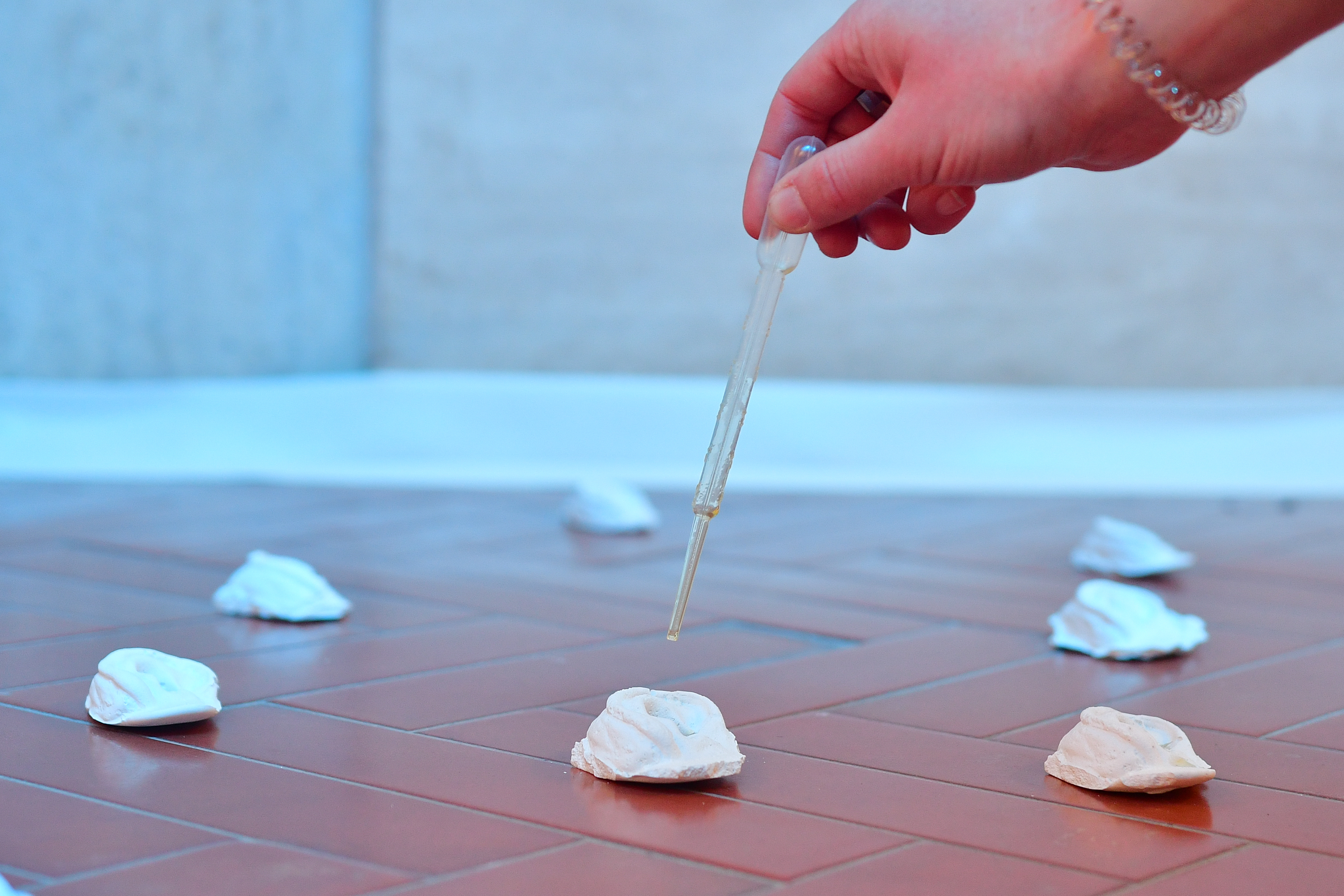 Maria Nitulescu; “The Hum of Earth” 2021; Olfactory Work, Plaster, and Scent Developed in Collaboration with Perfumer Geza Schön; 15 x 15 x 15 cm; Exhibition view of “The Factum: A Reality of Space and Time,” curated by Niccolò Lucarelli at Museo Pietro Canonica a Villa Borghese.